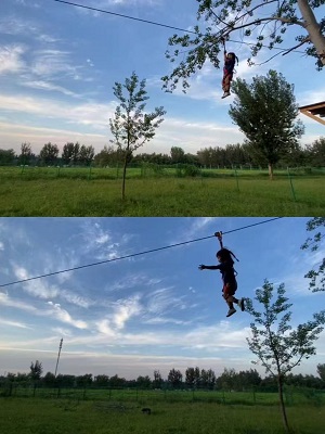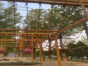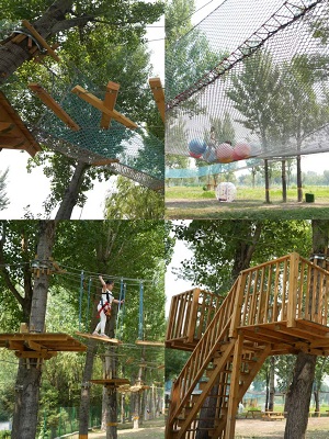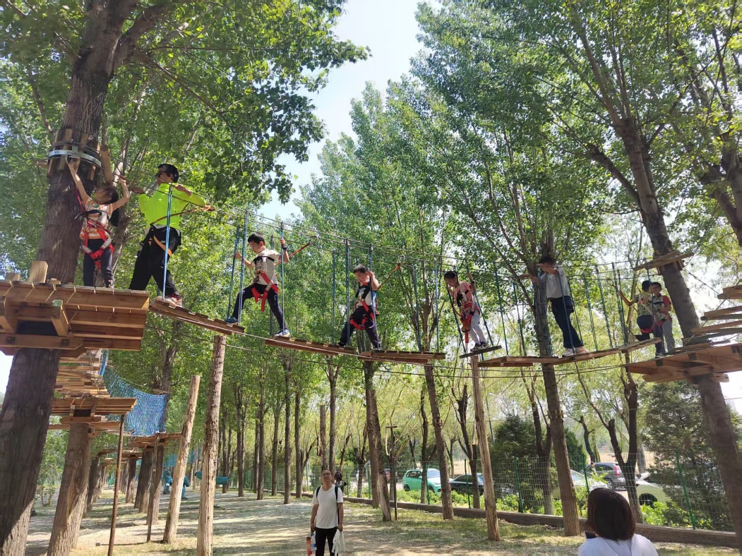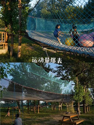 该项目建于2022年11月,面积20000平米,是一座纯手工打造的以原木和绳索为主要材料的原生态户外亲子乐园。特色项目为丛林穿越350米,35个桥段,加100米飞索,综合各种障碍挑战,集挑战性和趣味性于一体,给孩子带来新奇刺激的体验。网绳面积超过500平米,采用多层弹性网绳和高空立体结构,给孩子们带来无穷乐趣。障碍赛设计科学,适合儿童青少年锻炼上肢力量及全身的协调性,深受游客喜爱。