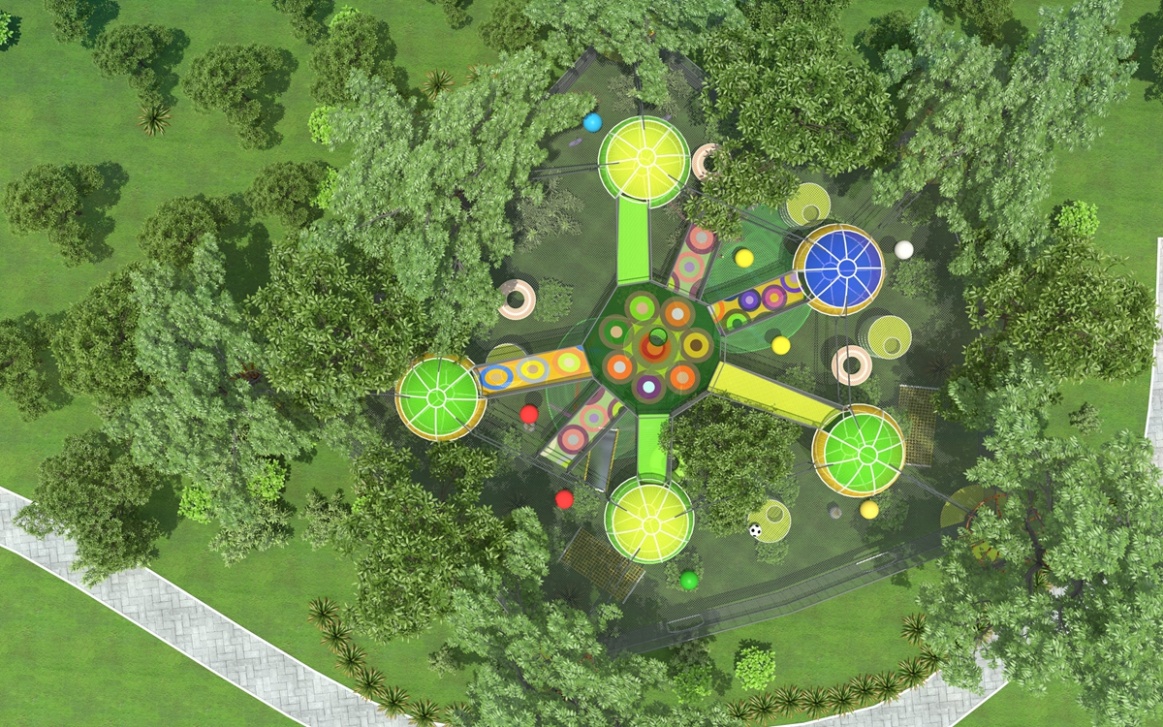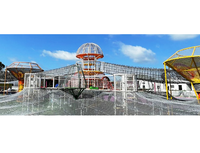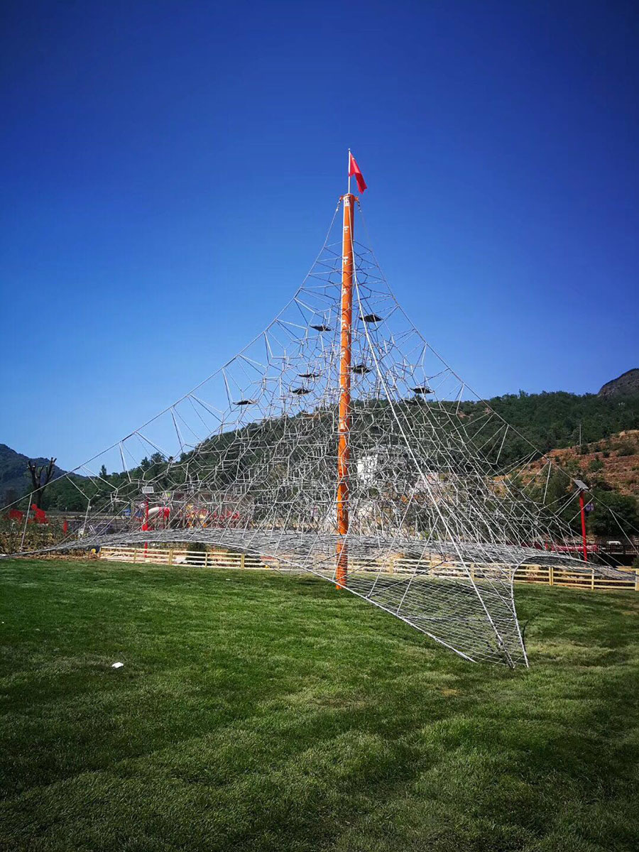 设备包括丛林魔网、攀爬网、网红蜘蛛塔、蹦床、绳网通道、绳网滑梯等